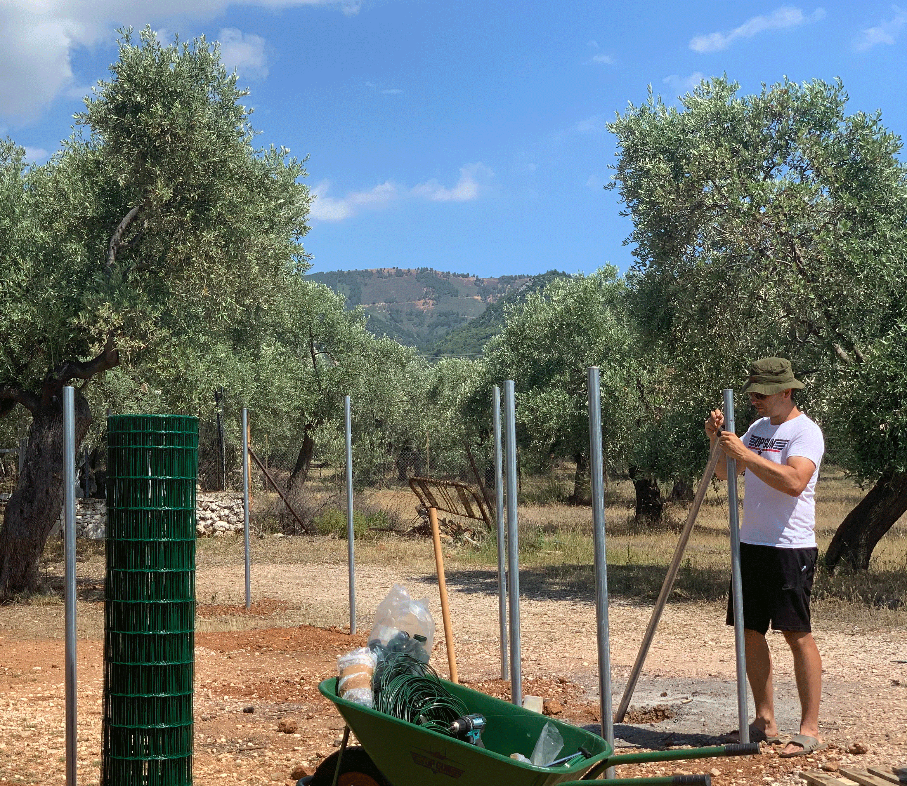 Der Zaunbau war ein wichtiger Schritt zum Schutz der Olivenbäume vor freilaufenden Ziegen und Schafherden. Denn diese würden alle frischen herabhängenden Oliventriebe abfressen.